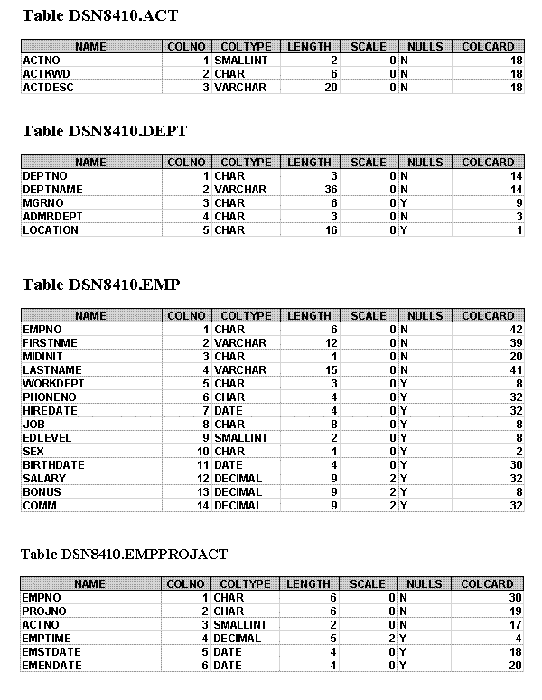 IBM Sample Tables
