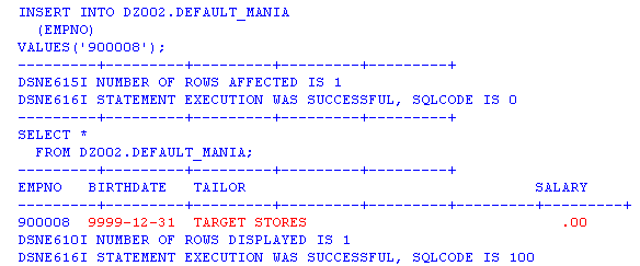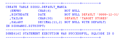 With DB2 V4.1, users can define default values for table columns other than the standard defaults of zero, spaces, a date of 0001-01-01, etc. In addition, the column for which the default is defined does not need to be NOT NULL.